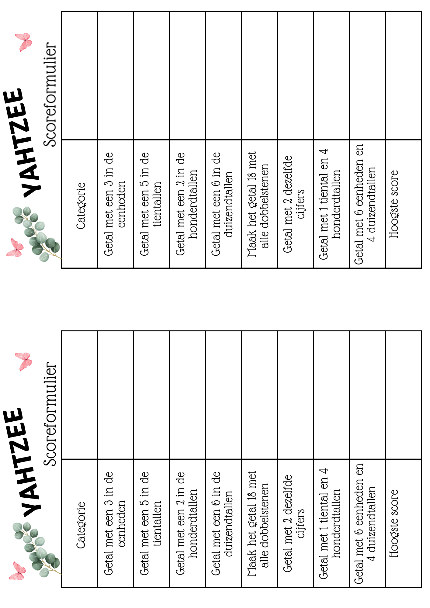 Yahtzee scoreformulier